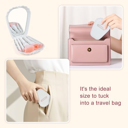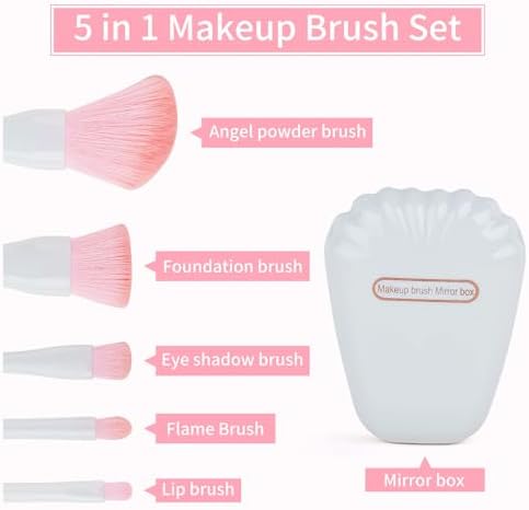 وصف المنتج طقم فرش مكياج 5 قطع مع مراية للسفر من MS. WENNY |