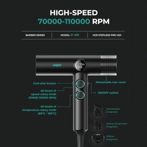 وصف المنتج سيشوار VGR V-401 موتور BLDC احترافي بشاشة LED |