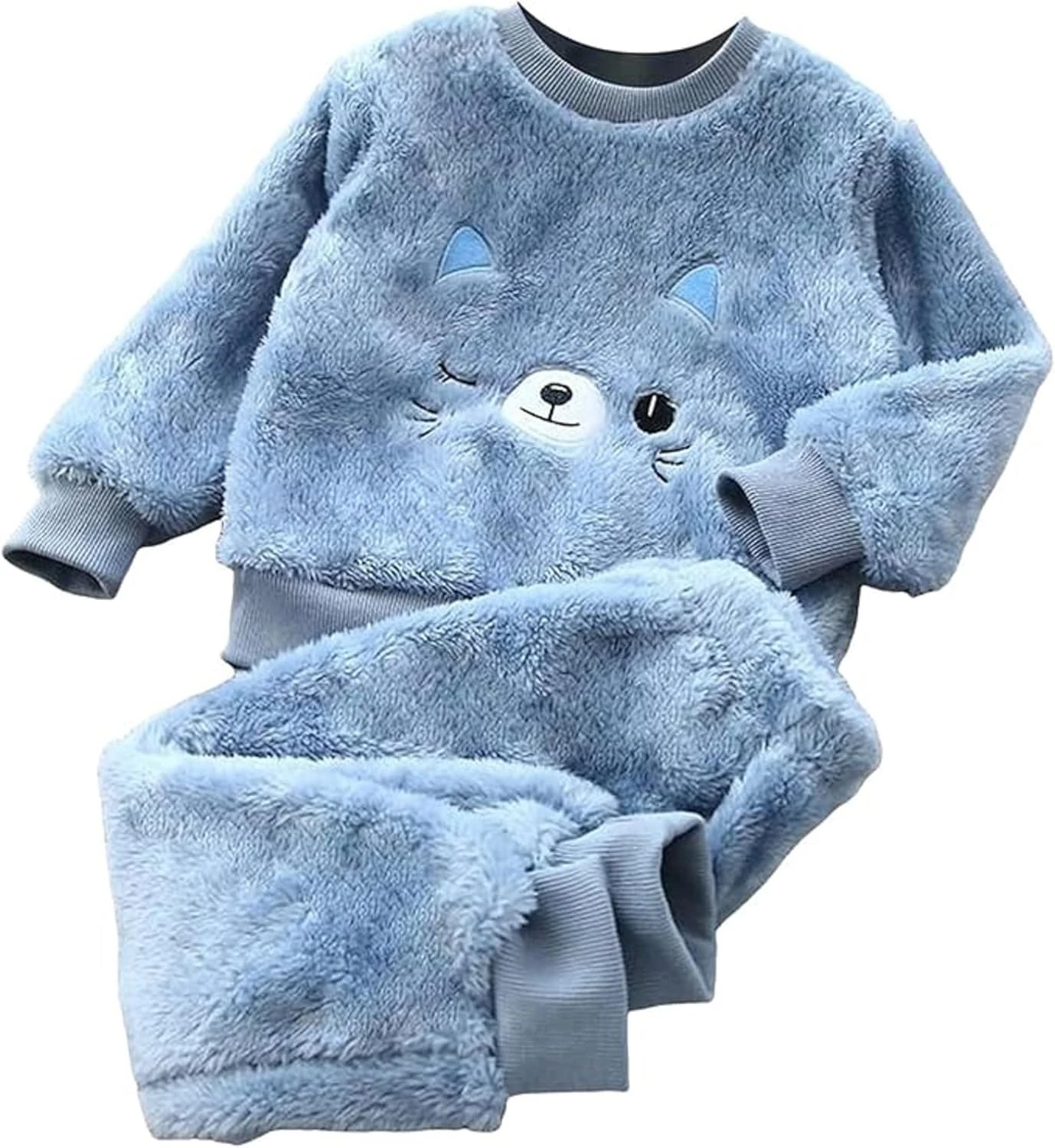 طقم شتوي للأطفال من MIZAYA – خامة فرو ناعمة بتصميم كرتوني كيوت | دافئ ومريح