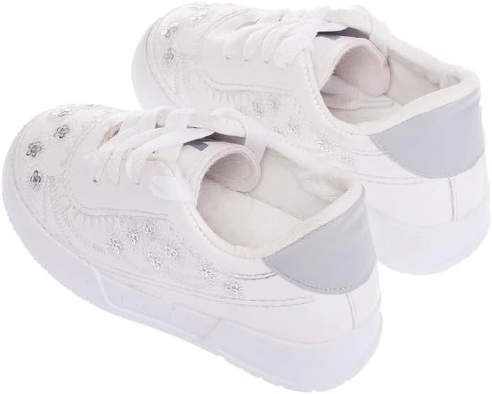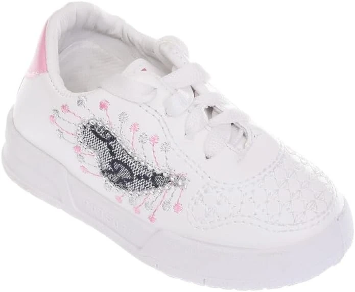 كوتشي بناتي أطفال جلد Express برباط | حذاء مشي وخروج بتطريز زهري