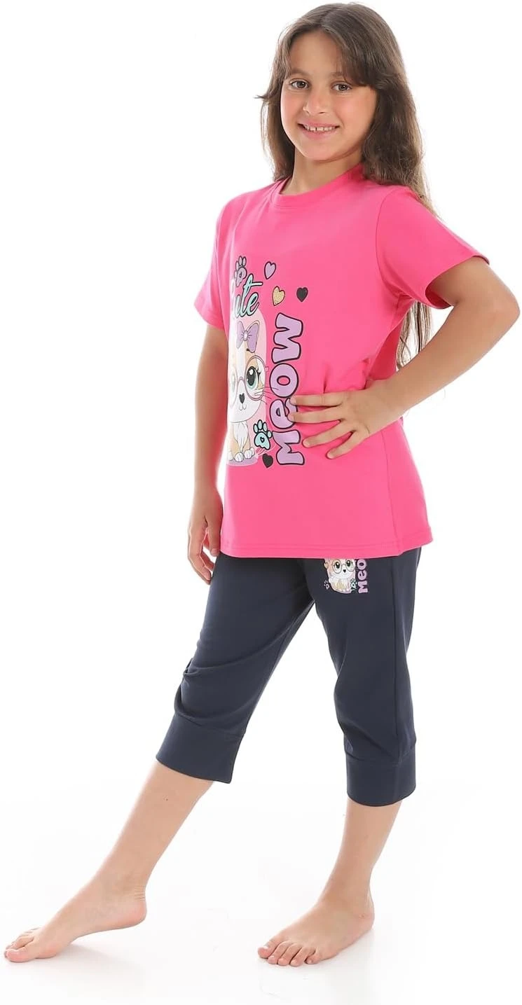 طقم بنات CAESAR – تيشيرت مطبوع + شورت قطني للأطفال –