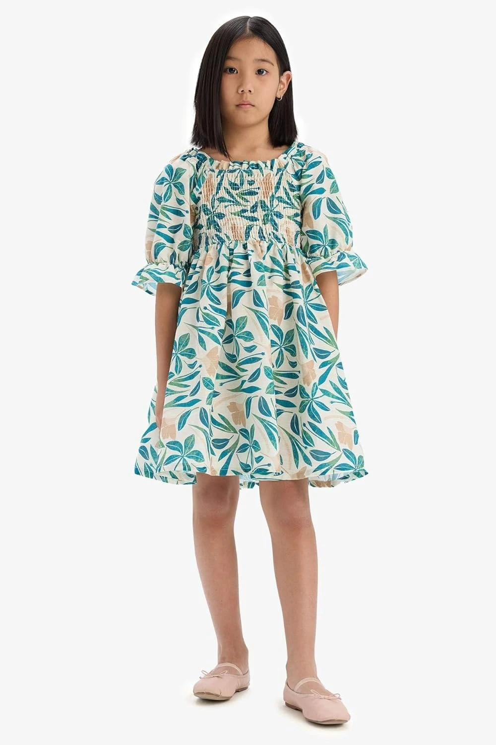 فستان بنات DeFacto – كم قصير – فستان قطني مريح وأنيق