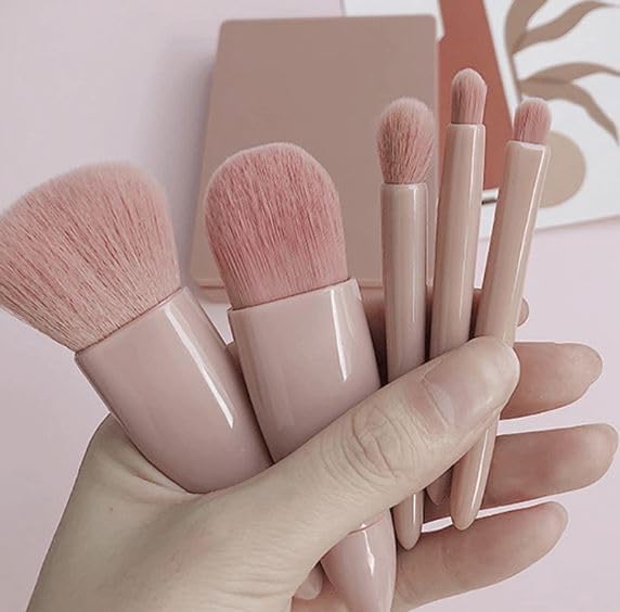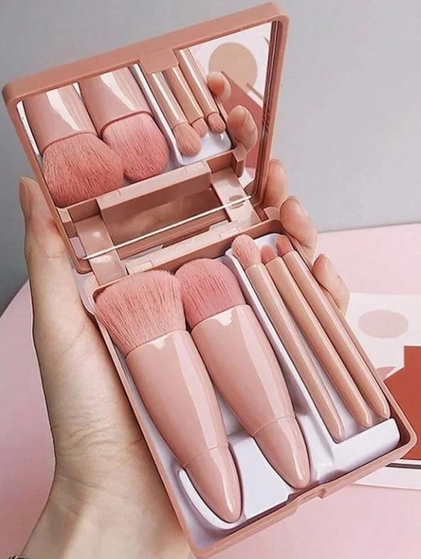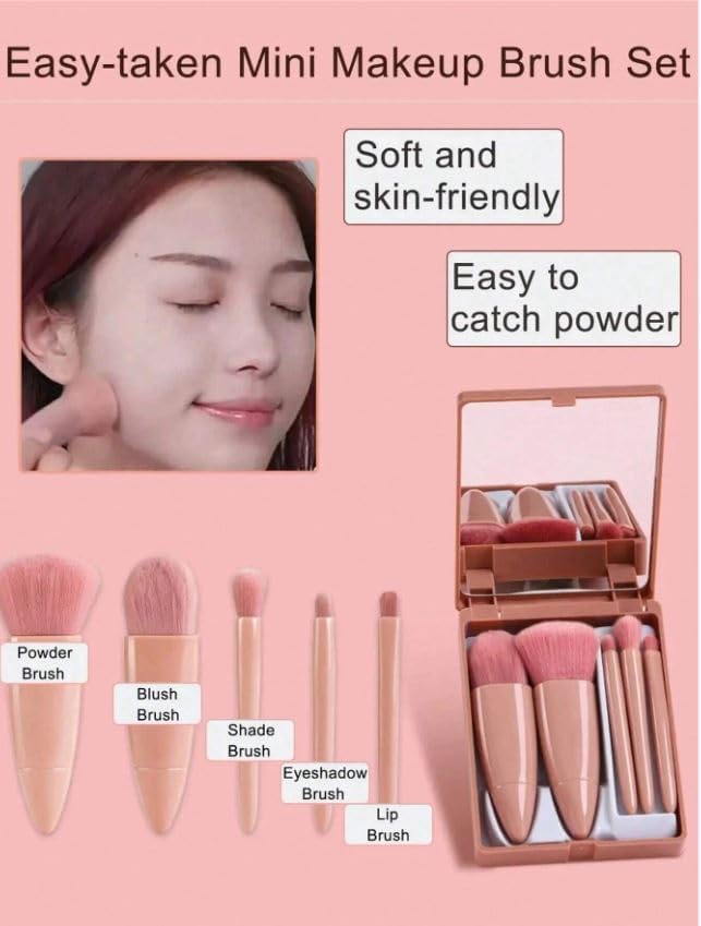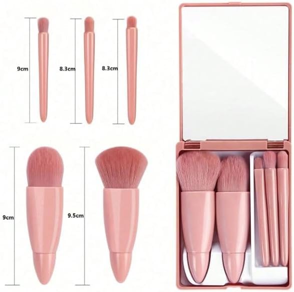 وصف المنتج طقم فرش مكياج محمول 5 قطع بمراية |