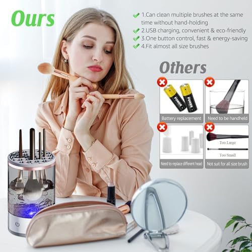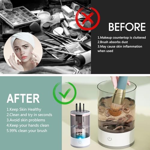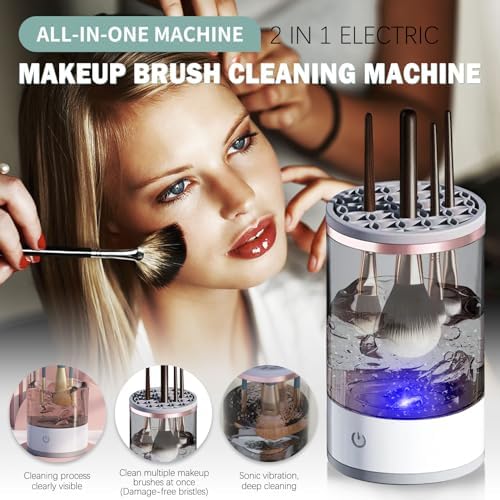 وصف المنتج جهاز تنظيف فرش مكياج كهربائي 2 في 1 من بودير |