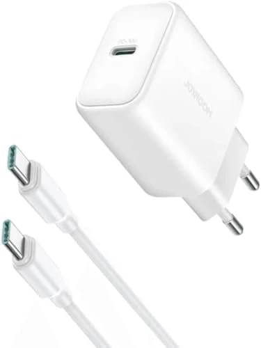 شاحن Joyroom JR-TCF20 حائط سريع 20 وات USB-C PD مع كابل USB-C إلى USB-C بطول 1 متر – أبيض صغير