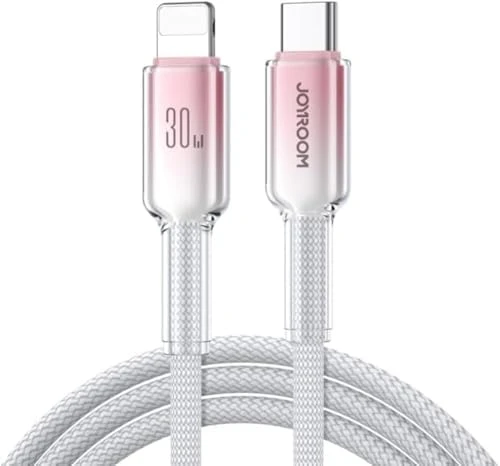 كابل Joyroom S-A42 Crystal-Clear Series للشحن السريع 30 وات USB-C إلى Lightning – 1.2 متر أبيض