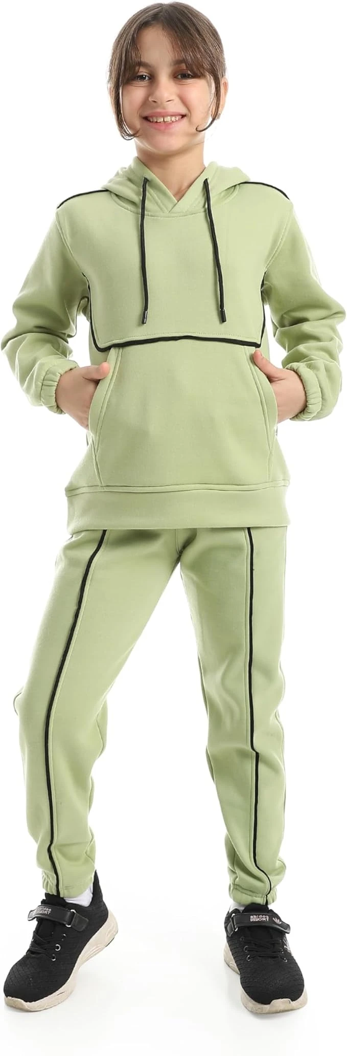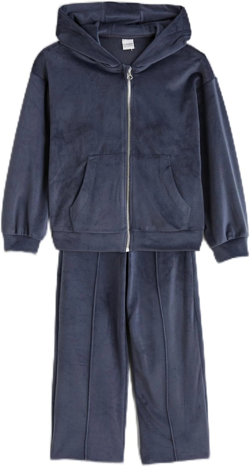 تريننج بناتي قطيفة من LC WAIKIKI – سويتشيرت بكابيشو وبنطال | طقم شتوي ناعم ومريح