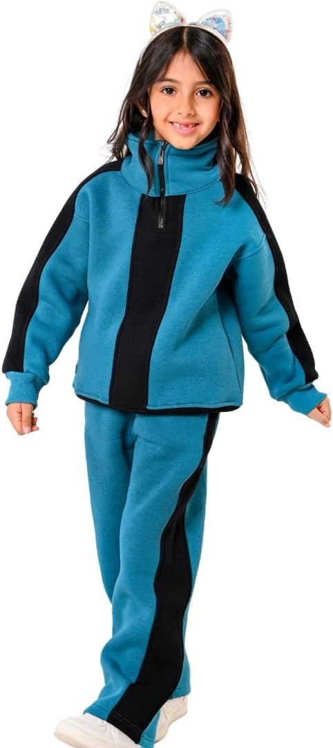 تريننج شتوي للبنات – سويتشيرت برقبة عالية وسوستة نصفية مع بنطال جوجر | طقم دافئ ومريح