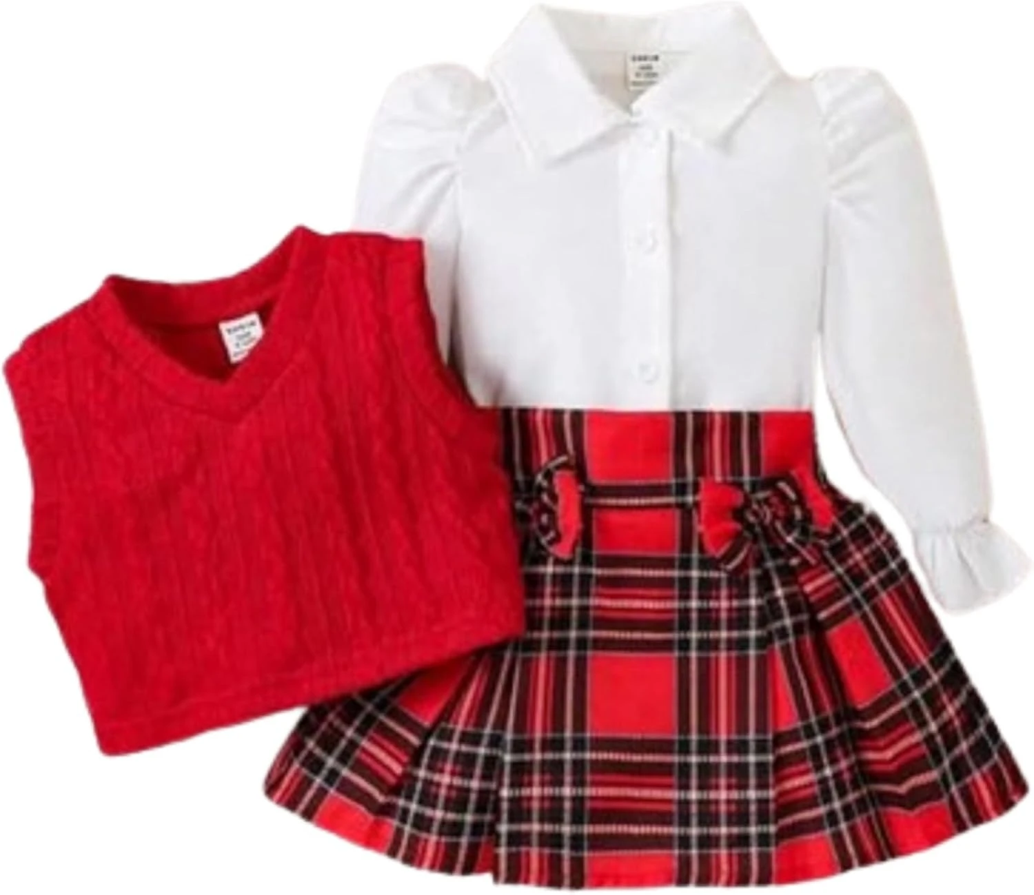 طقم ملابس بناتي من Mizah – بلوزة كم طويل مع جيبة كاروه بأزرار جانبية | شيك لكل المناسبات