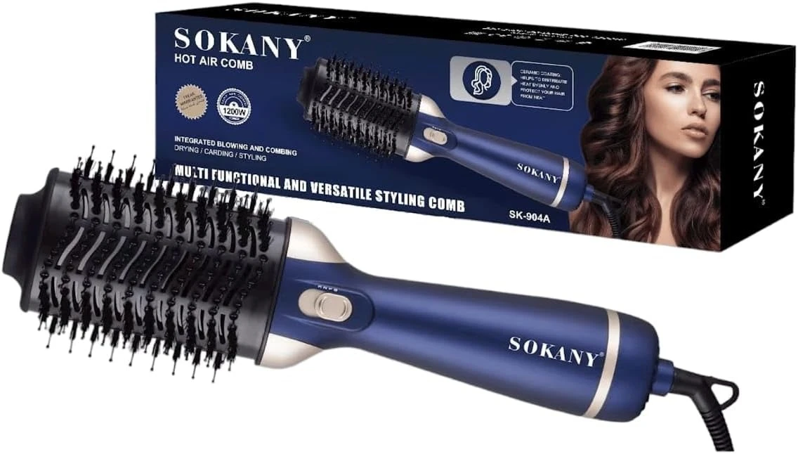 مشط هواء ساخن Sokany – 1200 وات، متعدد الاستخدام، أزرق