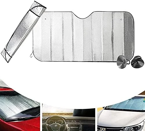 غطاء واقي شمس داخلي للزجاج الأمامي للسيارة – 70 × 140 سم، فضي