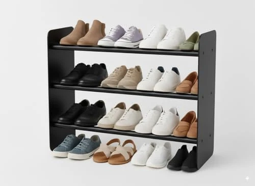 منظم أحذية ومعاطف متعدد الاستخدامات 2×1 – 4 مستويات، أسود