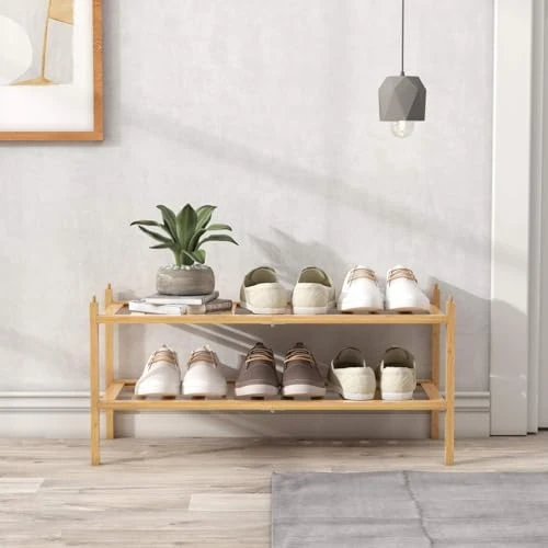 رف أحذية 2 طابق – منظم أحذية قابل للتكديس من الخيزران