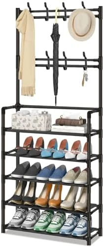 منظم أحذية WEECRON 5 مستويات مع شماعة معاطف – أسود