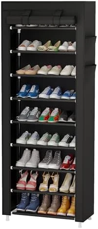 منظم أحذية رأسي ضيق VTRIN – 10 مستويات مع غطاء ضد الغبار، أسود