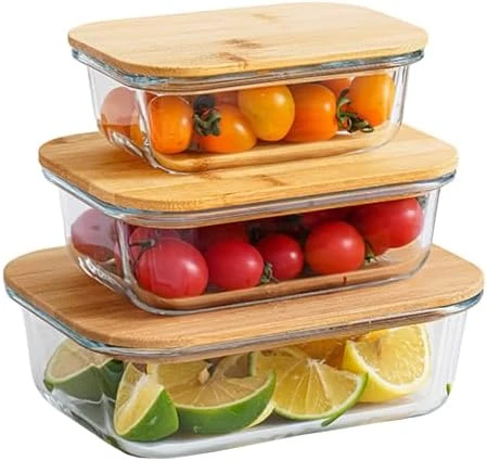 طقم حافظات طعام زجاجية Vellichor Europe – 3 قطع مع أغطية بامبو محكمة