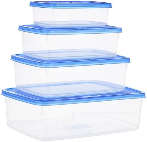 طقم حافظات طعام El Watania Omega – 4 قطع، شفاف مع أغطية زرقاء