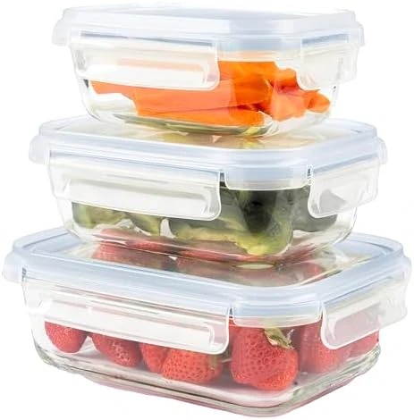طقم حافظات طعام زجاجية محكمة Home Fleek – 3 قطع، أزرق