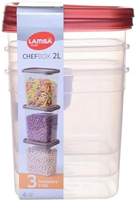 طقم حافظات طعام بلاستيك – 3 قطع، 2لتر، ألوان متعددة