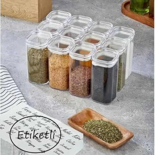 طقم حافظات تخزين عالية تركي أكريليك – 12 قطعة، 250مل، شفاف مع ختم سيليكون