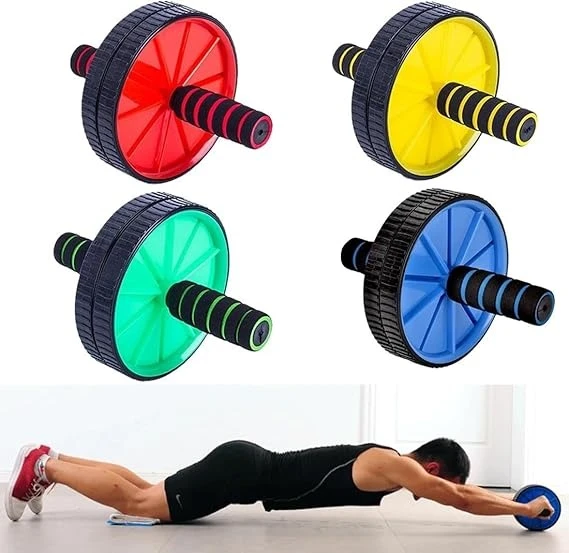QSHOP® رولر للبطن بعجلتين مع وسادة ركب – تمارين شد البطن والذراعين