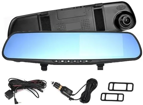 داش كام LESHP بعدستين – كاميرا مرآة للسيارة مع شاشة 4.3 بوصة