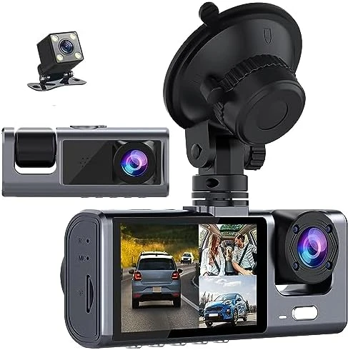 كاميرا سيارة Exrp بثلاث عدسات أمامية وخلفية وداخلية بدقة 1080P مع رؤية ليلية بالأشعة تحت الحمراء