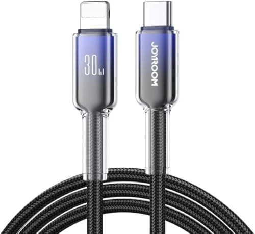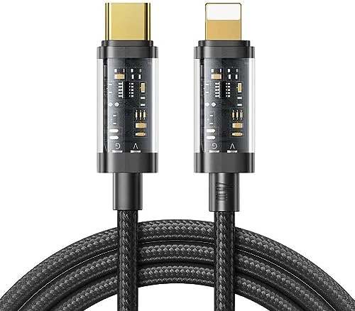 كابل Joyroom S-A42 Crystal-Clear Series للشحن السريع 30 وات USB-C إلى Lightning – 1.2 متر أسود