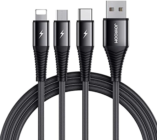 كابل Joyroom متعدد الشحن – 3 في 1 مضفر نايلون للشحن السريع مع Type-C، Micro USB، وLightning