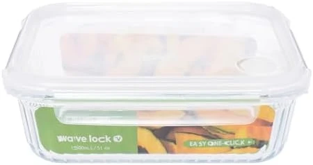 حافظة طعام زجاجية Neoflam Wavelock – 1.5لتر مستطيلة، آمنة للميكروويف