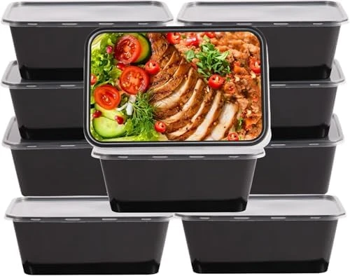 طقم THE PACK لتحضير الوجبات – 10 قطع، 1000 مل أسود، آمن للميكروويف والفريزر