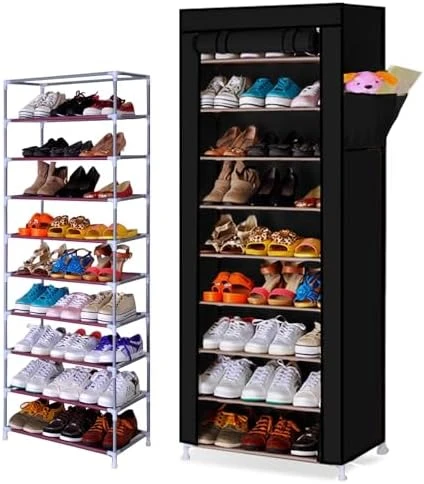 منظم أحذية رأسي ضيق VTRIN – 10 مستويات مع غطاء ضد الغبار، أسود