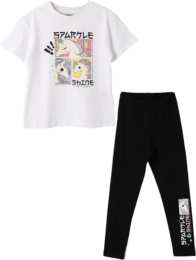 طقم ملابس بناتي من LC Waikiki – تيشيرت مطبوع برقبة دائرية وبنطال ليجن | مريح للاستخدام اليومي